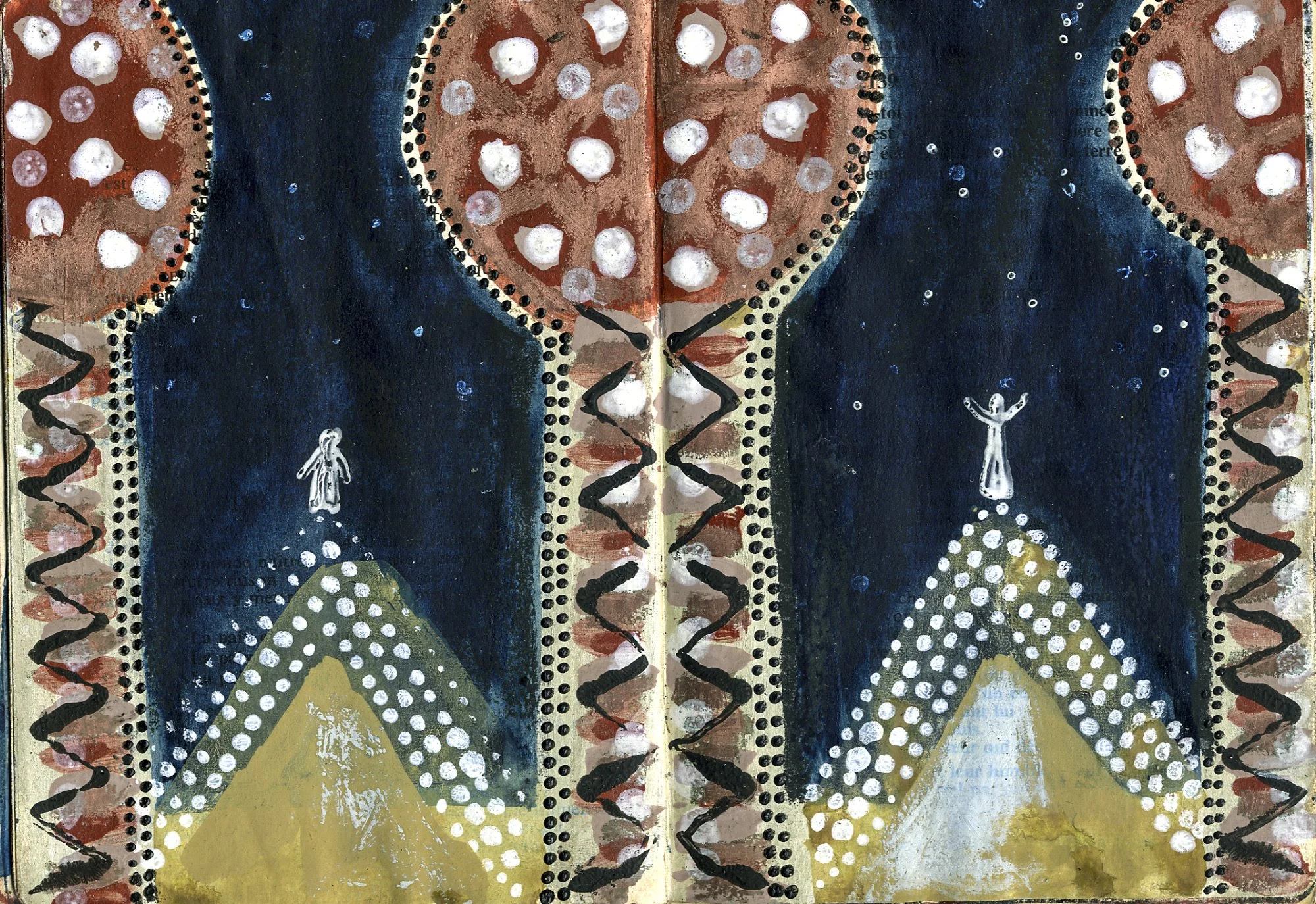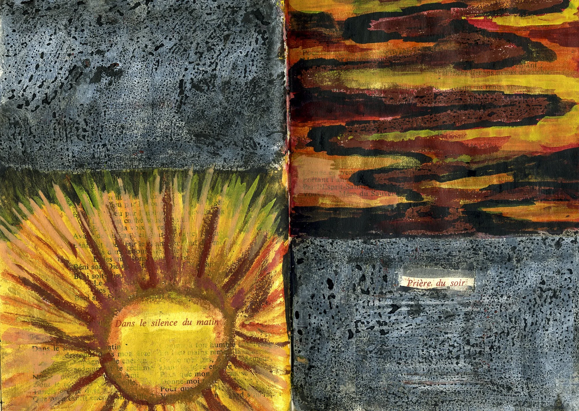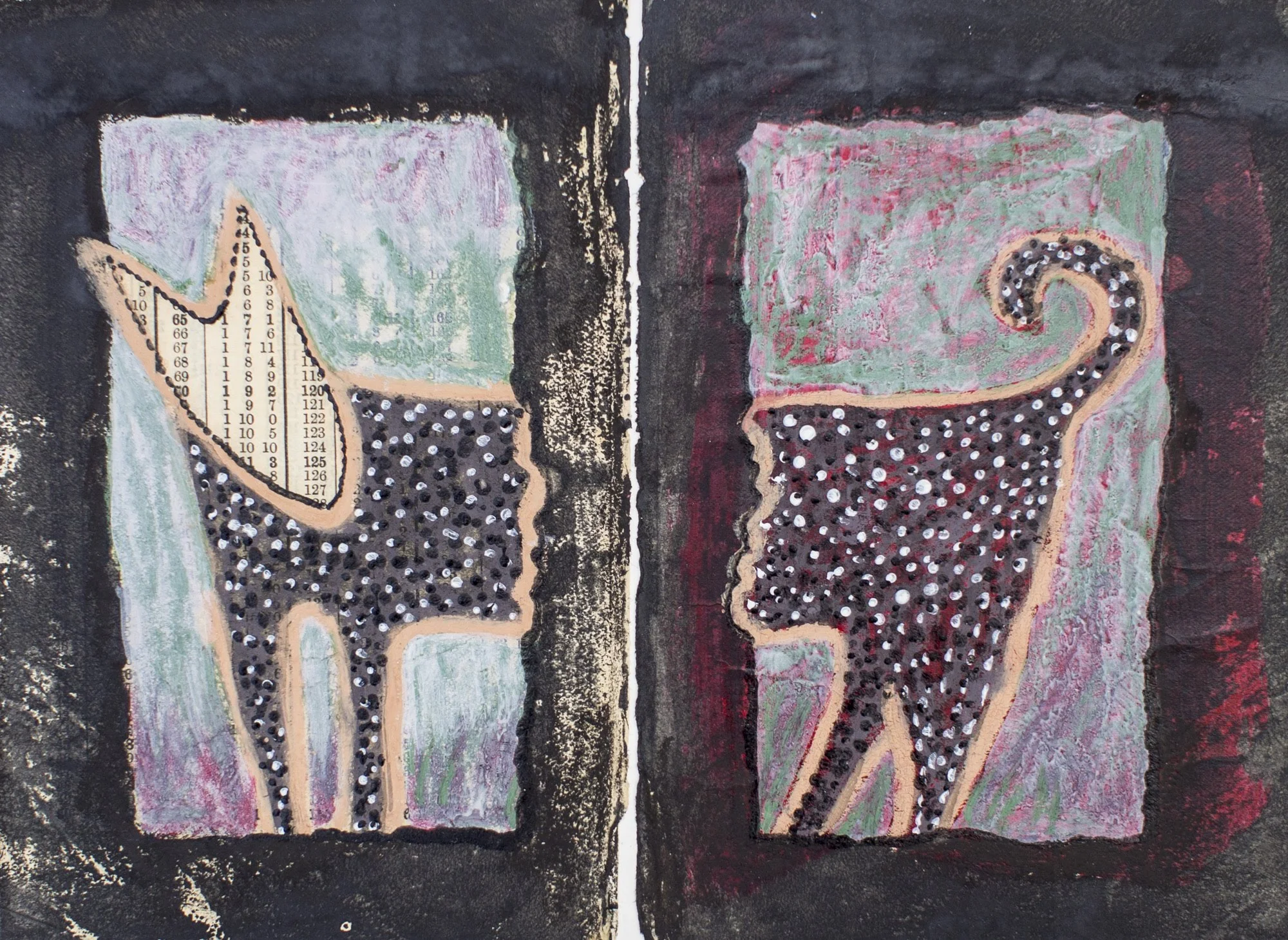 Tess Edwards' rich artistic career deals with metaphysical themes, notably through appropriated and reworked antique documents and books. Upon returning to Australia after twenty years in France, she decided to open her late husband - George Baldessin’s etching studio to artists, in a communal, creative spirit.