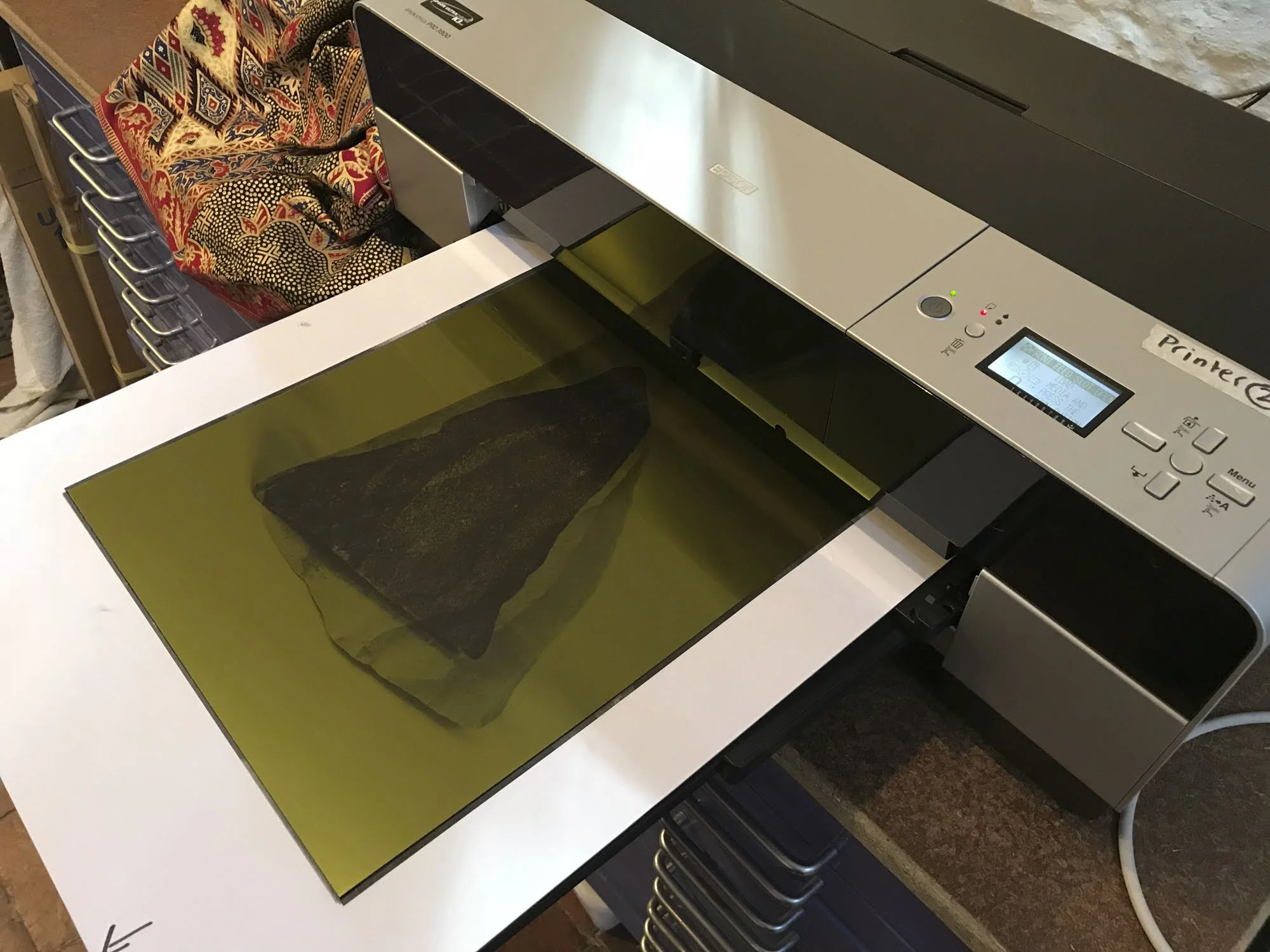 Without the need for a film, the computer image is printed directly on to the plate, then exposed and etched in water. This method also does away with the need for a double exposure and the vacuum frame. You will spend less time making plates, and more time making prints! We will also explore the possibilities of digital chine colle layers with your prints.